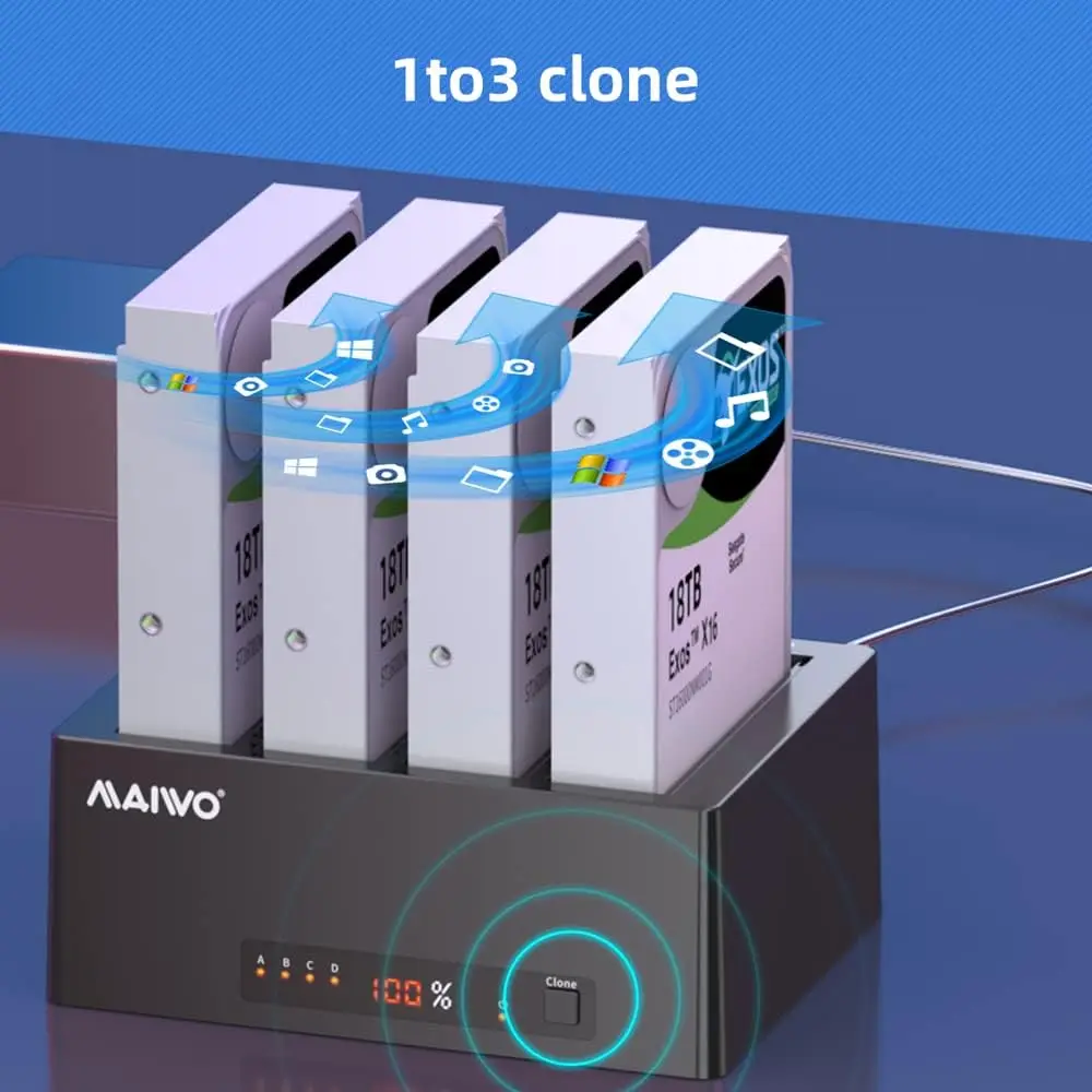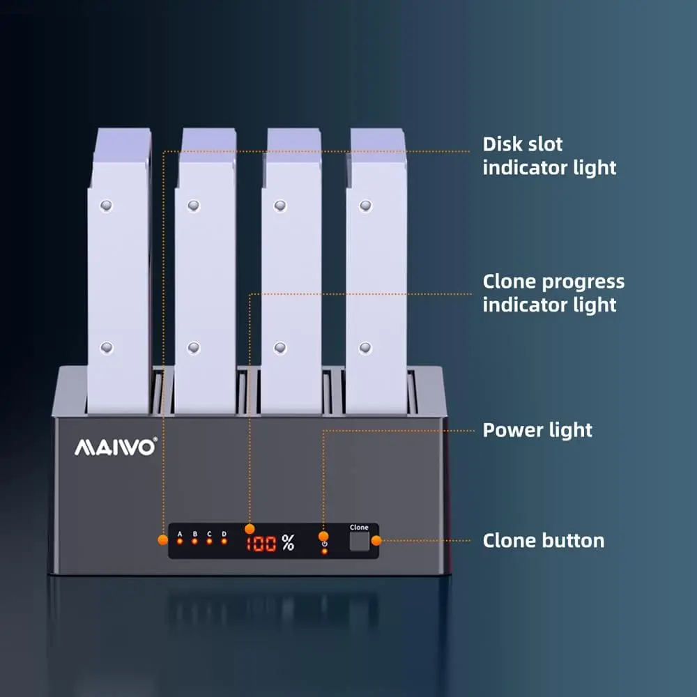 | Vitesse de transfert 5Gbps | Ce duplicateur de disque dur a une vitesse de transfert de 5Gbps, 20% plus rapide que l’USB 3.0 traditionnel et rétrocompatible avec USB2.0 et USB1.1. |
