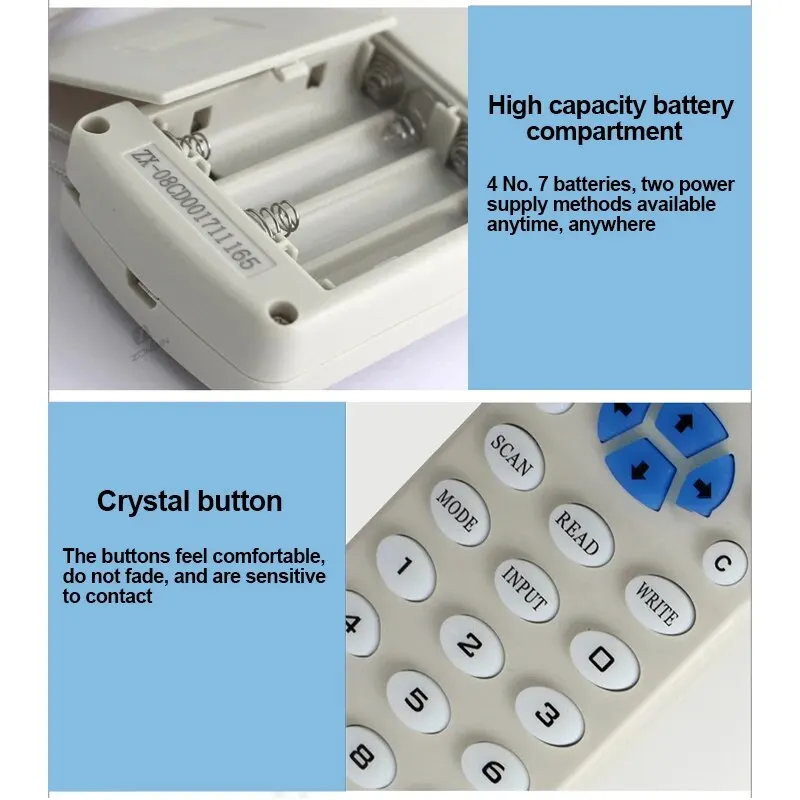 Vous pouvez entrer directement les touches numériques utilisées pour entrer le numéro de carte. Possède une interface USB. Utilise 4 piles AA, équipement standard, facile à transporter (non inclus). Il a une fonction de décodage et peut directement préparer divers types de ports d’accès à la carte à puce.