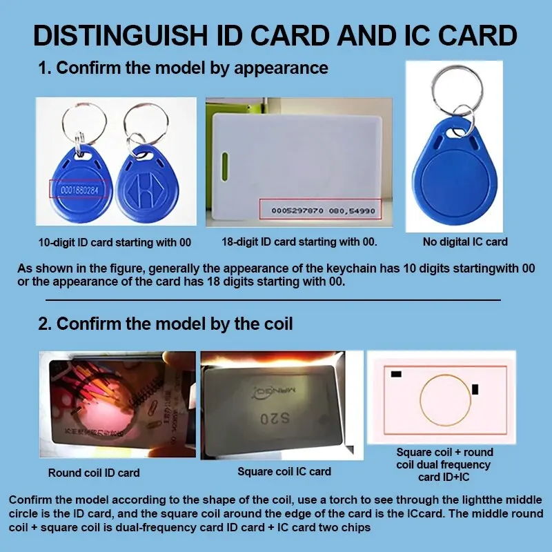 - Prise en charge de la fréquence de lecture et d’écriture: 125 kHz, 250 kHz, 375 kHz, 500 kHz, 625 kHz, 750 kHz, 875 kHz, 1000 kHz, 13.56 MHz et prise en charge de la carte à induction cachée.